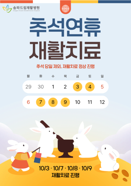 다가오는 추석 연휴에도 저희 병원은 환자분들의 빠른 회복과 재활을 위해