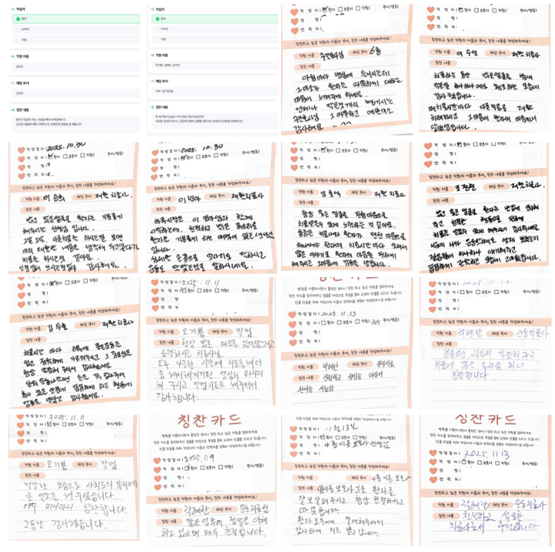 칭찬카드는 의료진과 직원들의 친절한 서비스, 치료 과정에서의 따뜻한 배려 등 다양한 격려가 담긴 소중한 기록입니다.