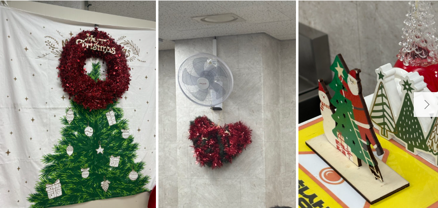 구내식당 환경을 전면적으로 꾸미며 직원 모두가 따뜻한 연말 분위기를 느낄 수 있도록 공간을 만들었습니다.