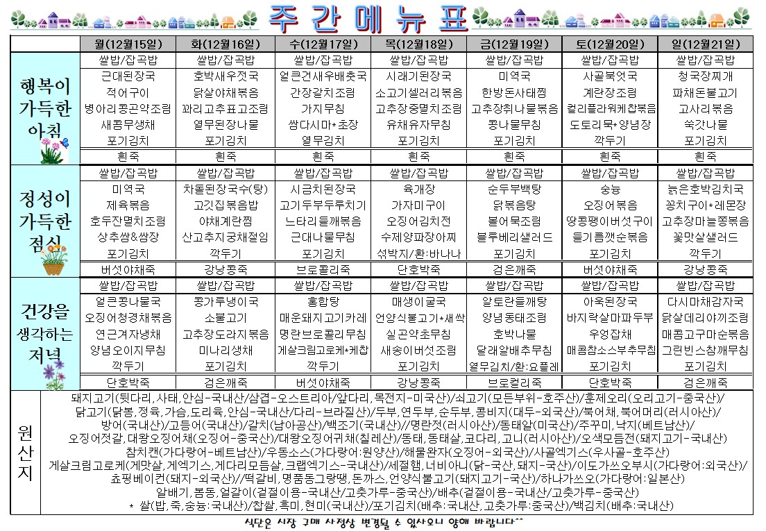 | 제목 | 주간식단표(25.12.15~25.12.21) |