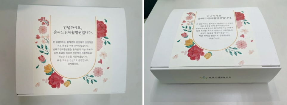 입원 키트는 입원 초기 필요한 개인 위생용품을 사용할 수 있도록 구성하여,