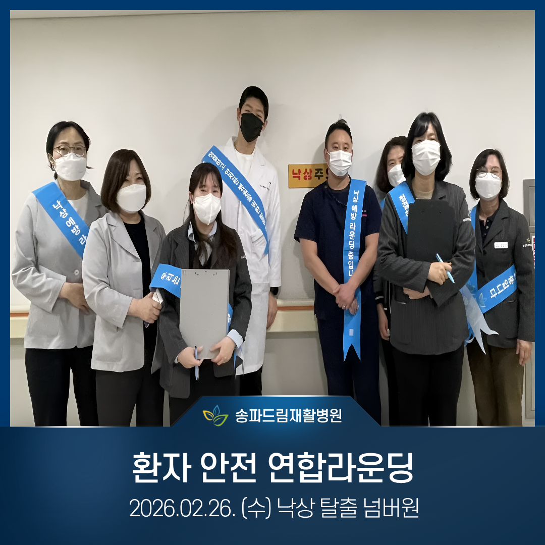 오늘은 "낙상 예방 및 이동 안전"을 주제로 환자안전 연합 라운딩을 진행하였습니다.