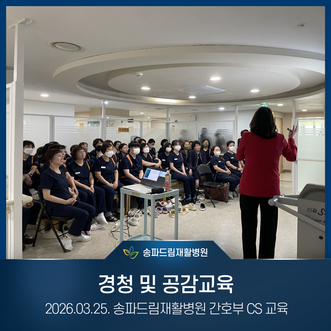 송파드림재활병원은 존중에서 시작하여 공감으로 이어지는 환자중심 소통을 단순한 교육이 아닌 현장에서 실천하는 문화로 만들어가고 있습니다.