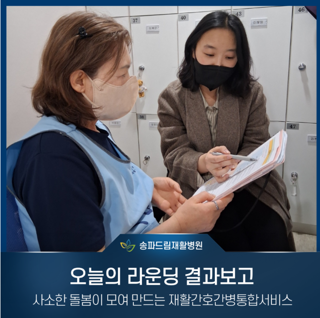 송파드림재활병원은 환자 중심의 재활치료 환경을 유지하기 위해 정기적인 병동 라운딩을 시행하고 있습니다.
