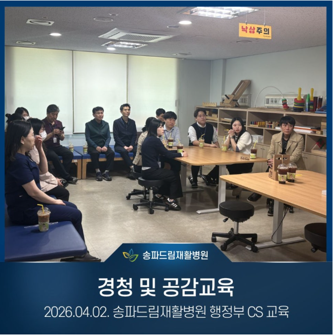 송파드림재활병원은 존중에서 시작하여 공감으로 이어지는 환자중심 소통을 단순한 교육이 아닌 현장에서 실천하는 문화로 만들어가고 있습니다.