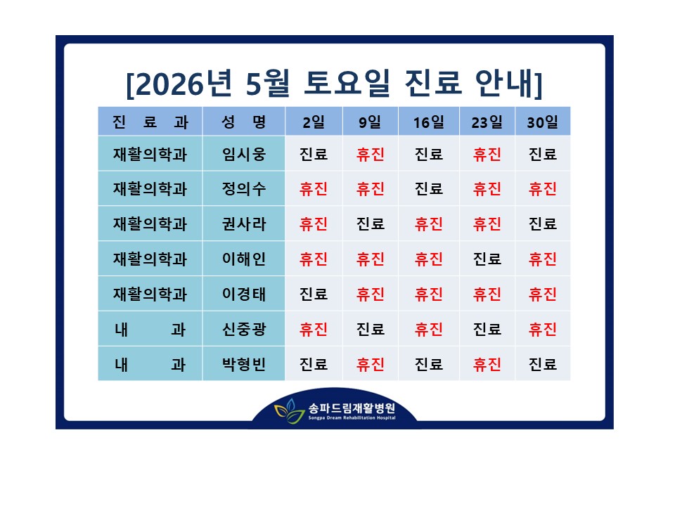 | 제목 | 2026년 5월 토요일 진료 안내 |