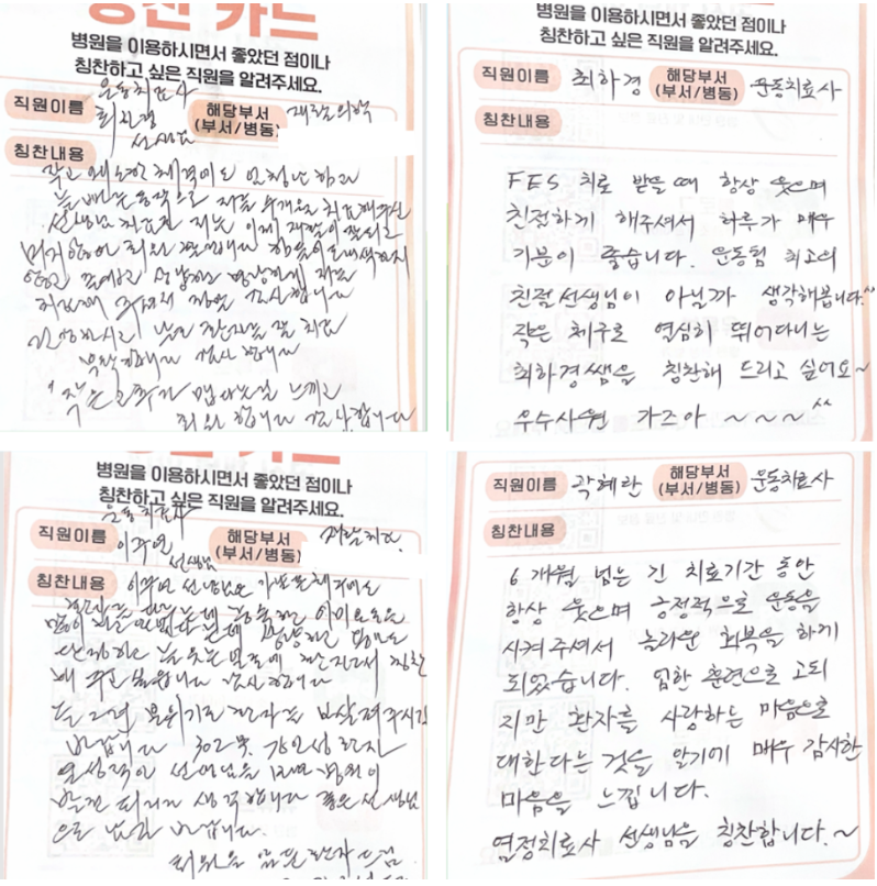 오늘은 환자분들과 보호자, 그리고 직원분들께서 전해주신 진심 어린 칭찬 메시지를 모아 소개드립니다.