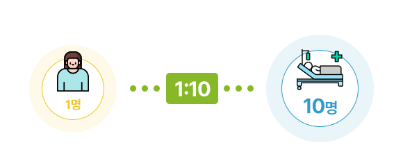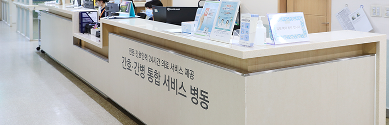 전문교육을 받은 재활전문 간호인력과 지원인력이 보호자 없이 환자에게 직접 질 높은 간호, 간병서비스를 제공하는 24시간 통합의료서비스입니다.