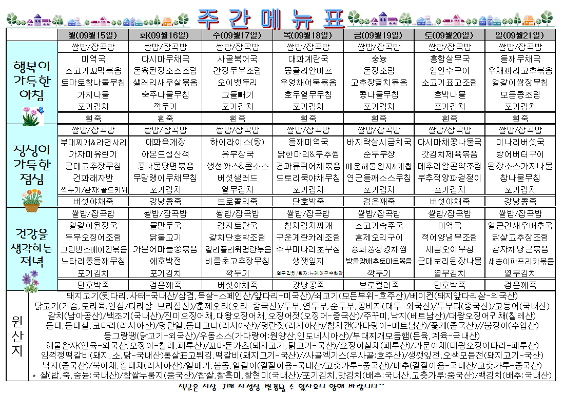 제목 | 주간메뉴표(2025.09.15~2025.09.21) |