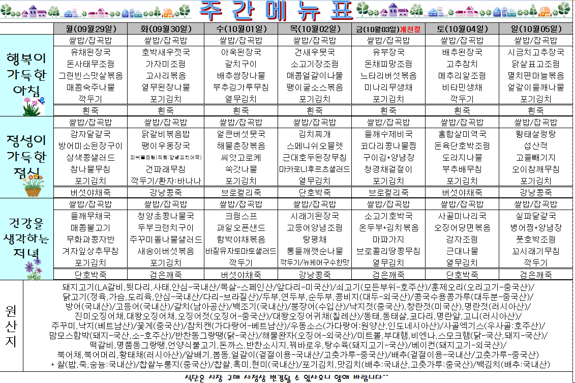 제목 주간식단표(2025.09.29~2025.10.05)