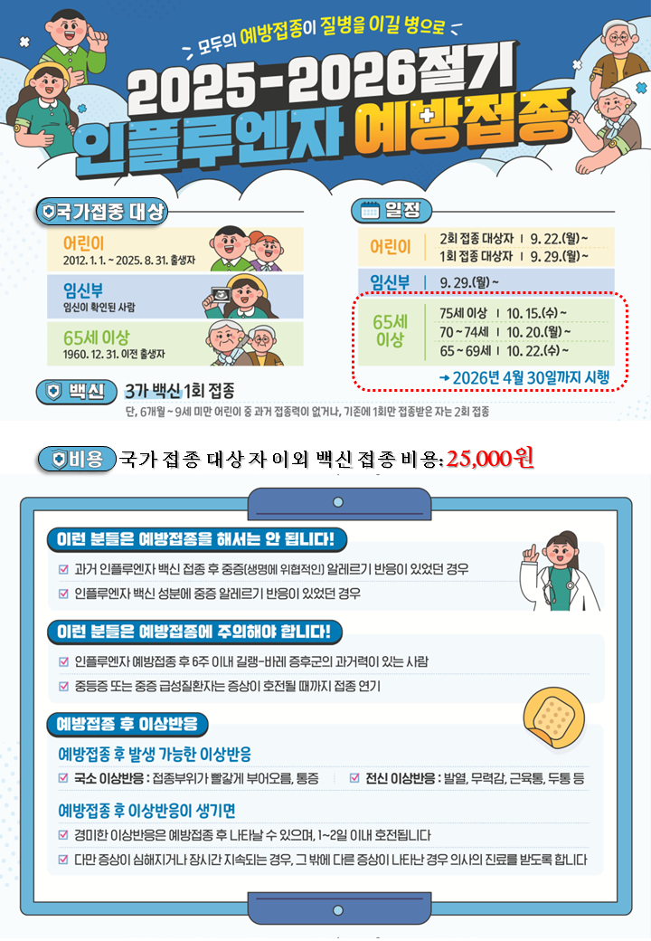 특히 어르신, 만성질환자, 면역저하 환자분들은 매년 정기적인 예방접종이 중요합니다.