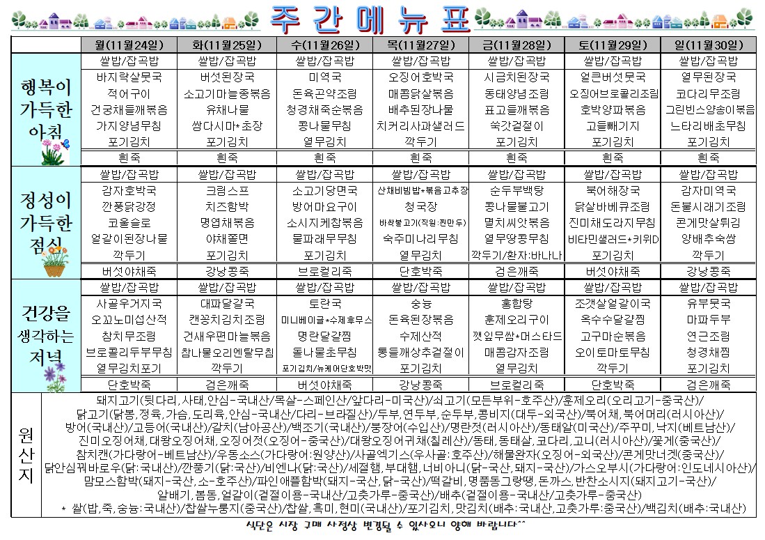 | 제목 | 주간식단표(25.11.24~25.11.30) |