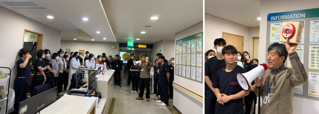 훈련 장소는 지하 1층 시청각실, 2층 병동, 1층 후문 주차장에서 단계별로 실시되었습니다.