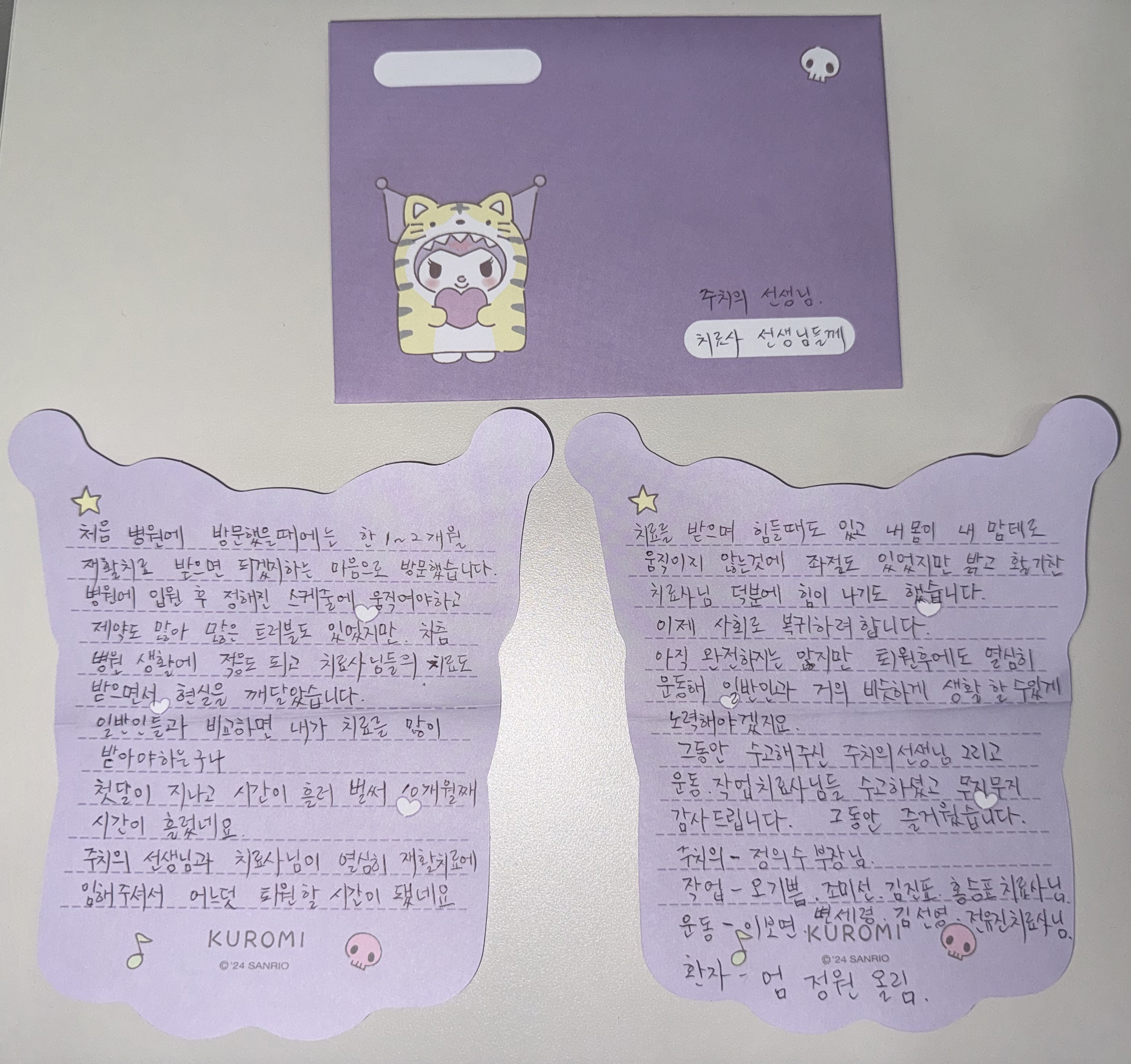 오늘은 환자분의 따뜻한 편지 내용을 환자분 동의하에 함께 나누고자 합니다.