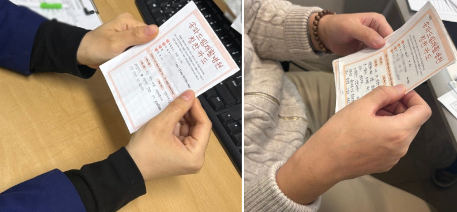 그리고 직원들이 직접 손글씨로 작성해 주신 따뜻한 칭찬카드가 꾸준히 접수되었습니다.