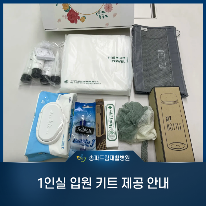 쾌적하고 안정적인 입원 환경을 제공하고자 1인실 입원 키트를 준비하였습니다.