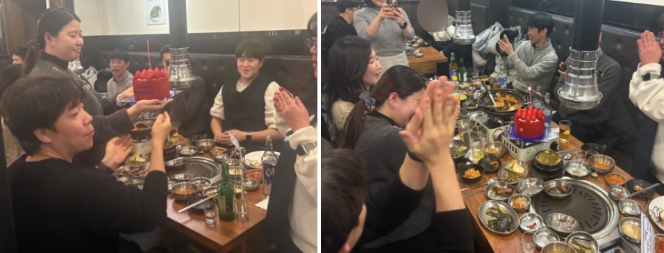 직원들은 고기를 마음껏 즐기며 그동안 나누지 못했던 이야기들을 나누고,