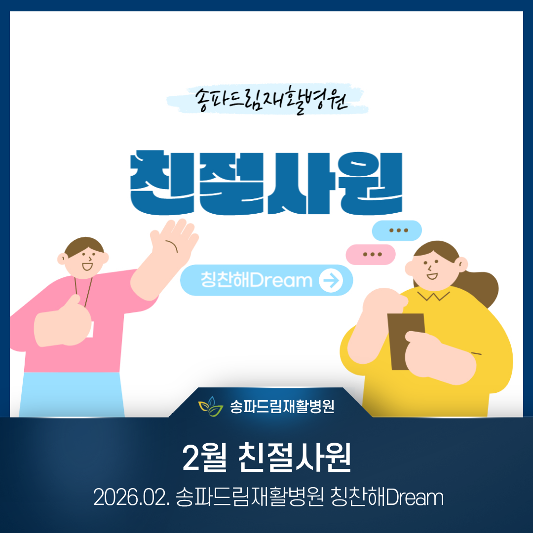 송파드림재활병원도 친절사원과 함께 환자분들의 건강한 삶을 언제나 응원하겠습니다.
