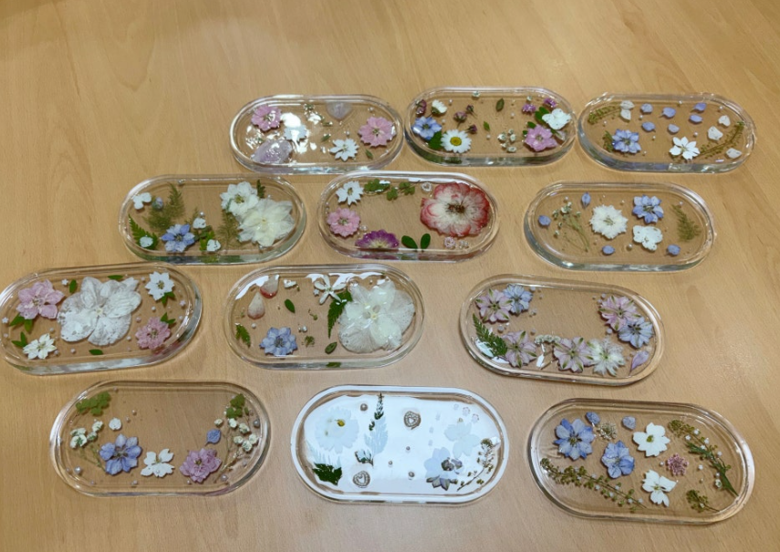 이번 모임에서는 오브제로도 활용할 수 있는 레진아트 생화 트레이 만들기를 진행해봤어요!