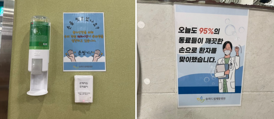 우리 병원의 손위생 준수율을 더 높이기 위해 직접 제작하신 게시물들인데요.