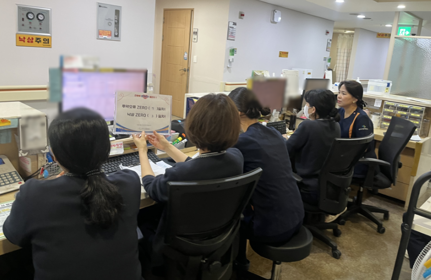 인수인계 시간마다 사고 사례를 투명하게 공유하며, 신규 간호사부터 베테랑 선생님들까지 함께 학습하고 경각심을 다집니다.