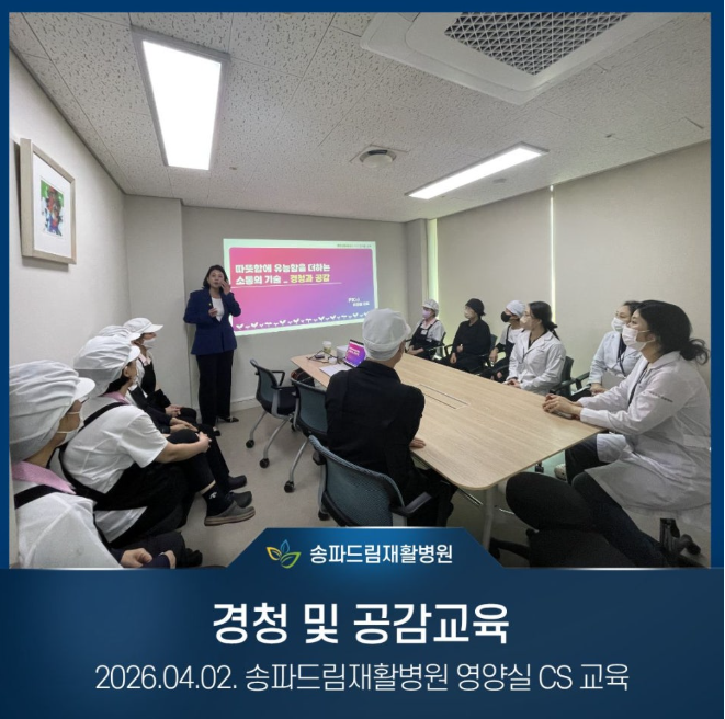 송파드림재활병원은 존중에서 시작하여 공감으로 이어지는 환자중심 소통을 단순한 교육이 아닌 현장에서 실천하는 문화로 만들어가고 있습니다.