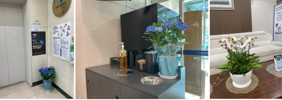 조금이나마 편안하고 따뜻한 분위기를 전해드리고자 곳곳에 다양한 꽃을 배치하였습니다.