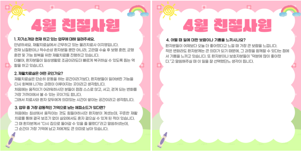 직원과 환자 모두에게 사랑받는 이지영 물리치료사의 이야기, 함께 들어볼까요?