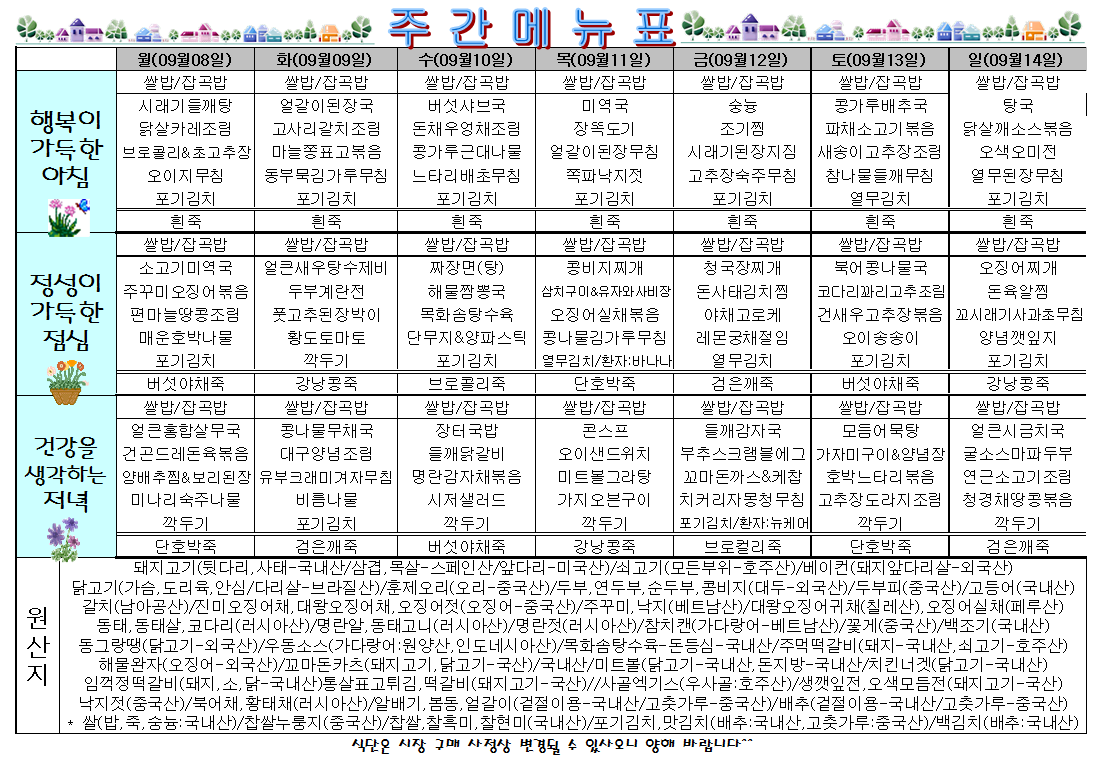 제목 | 주간메뉴표(2025.09.08~2025.09.14) |